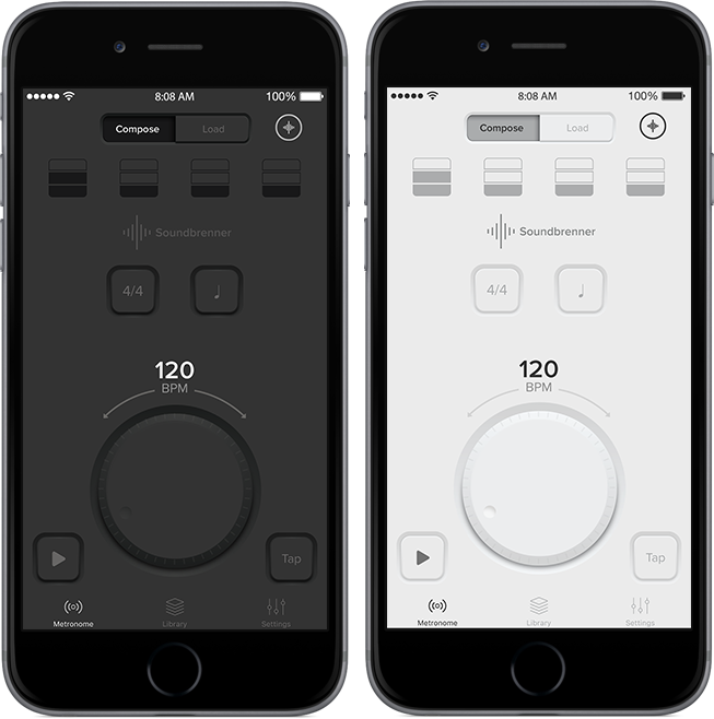 Visual: 2 color themes: dark and light. Classic metronome and Italian tempo marking option.