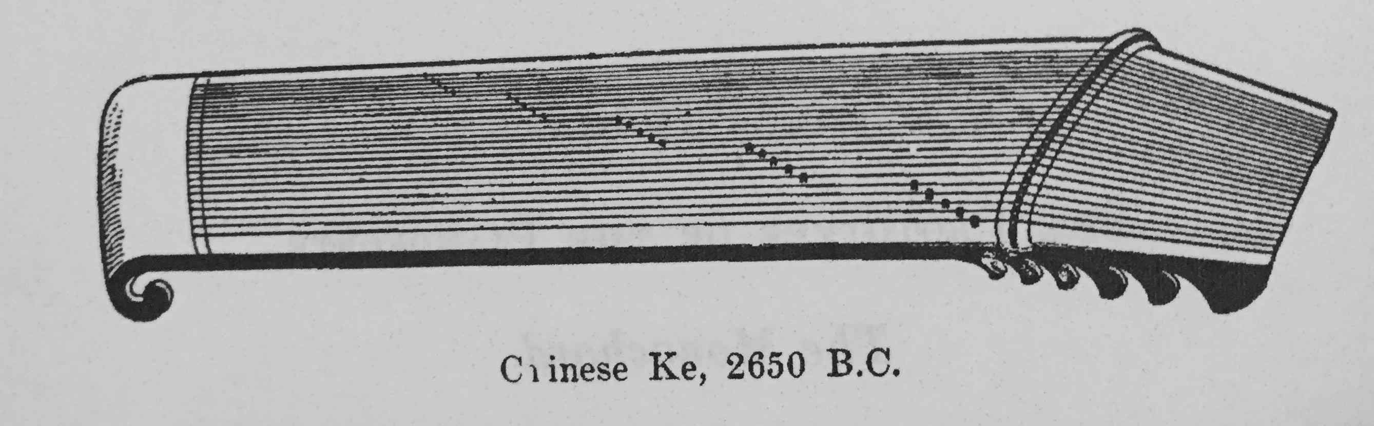 2650 B.C. – The Chinese had fashioned an instrument called the “ke” which had strings strung over a movable bridge on a wooden box that could be plucked to produce various tones