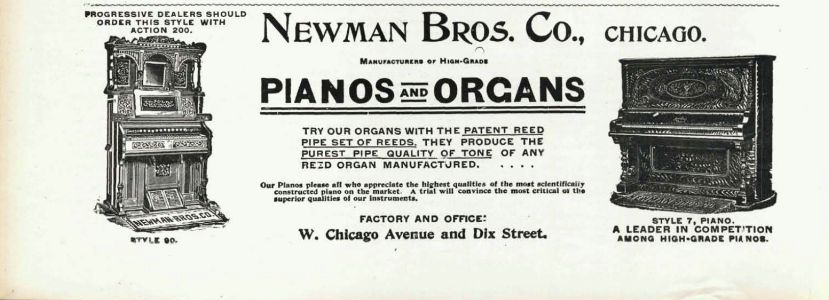 Newman Brothers was established in 1880 in Chicago, Illinois, by brothers L.M. Newman (president) and A.W. Newman (vice-president). Incorporated in 1982, the company originally manufactured both organs and pianos, but eventually phased out organ production to focus on creating superior pianos. [1]