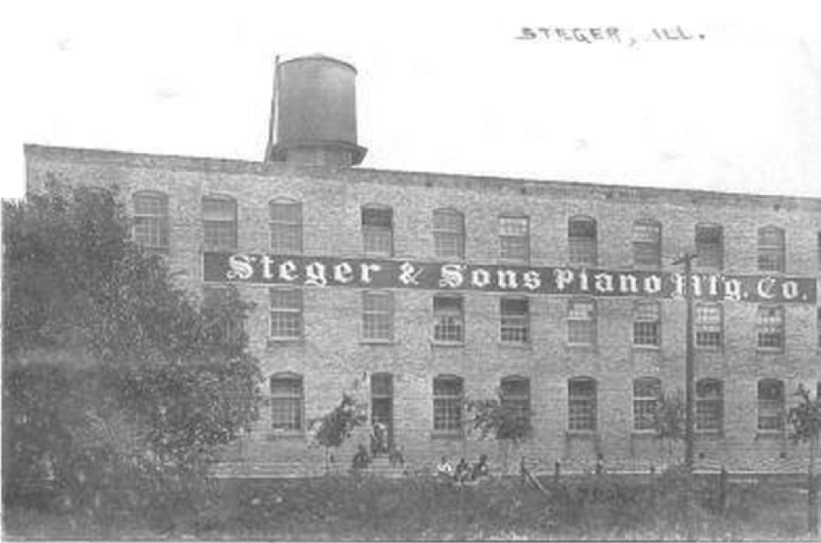 Founded in 1879, Steger and Sons Piano Manufacturing Company was located in Steger, Illinois; the small town created around the piano factory and named after it. Located about 30 miles from Chicago, the company was started by John Steger [1] who purchased the 1,500 acres of land that became the town of Steger. John envisioned a close-knit town filled with piano craftsman and anchored by the massive Steger piano factory.