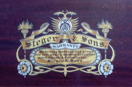 The Steger and Sons Company produced a diverse range of pianos including grands and uprights, player pianos, player grand pianos, reproduction grands and uprights, and phonographs. One can often distinguish a Steger piano by two characteristics: First, by its beautiful and elaborate case design; Second, by its beautiful tone.