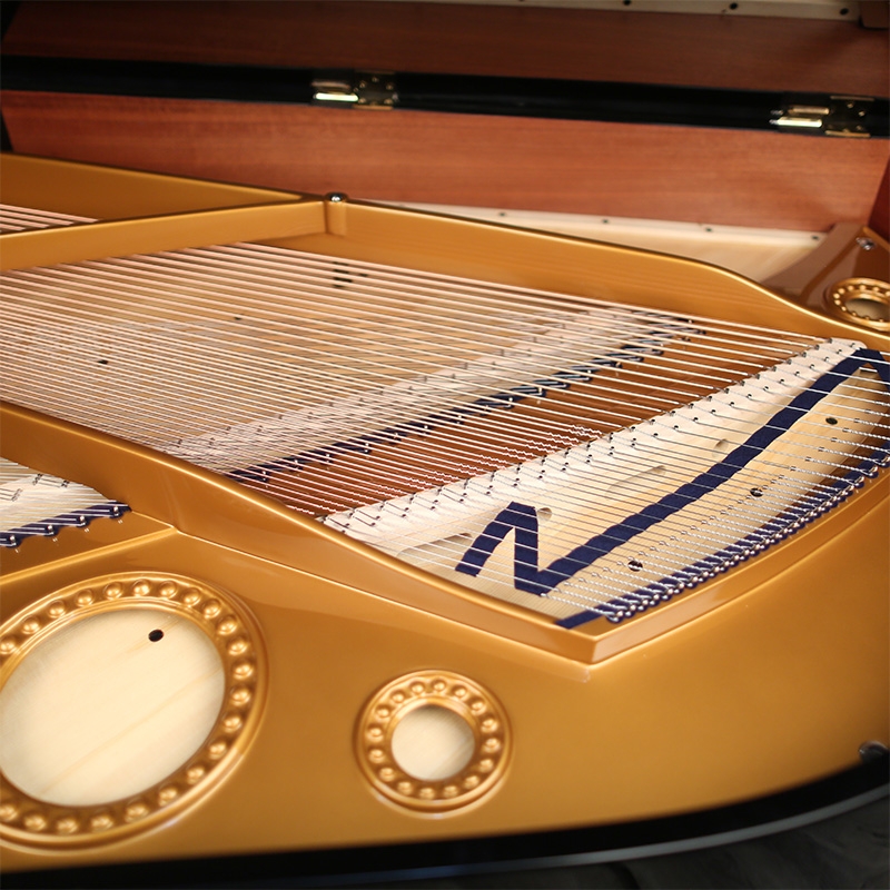 We recommend that this soundboard be replaced with a hand-crafted spruce soundboard.