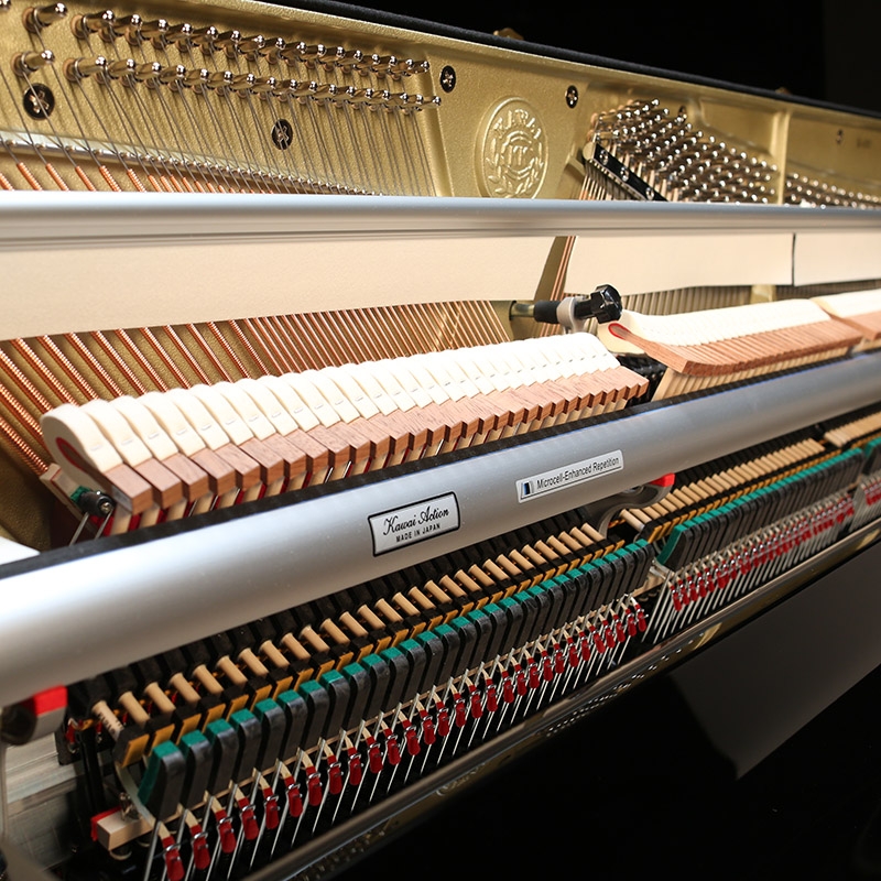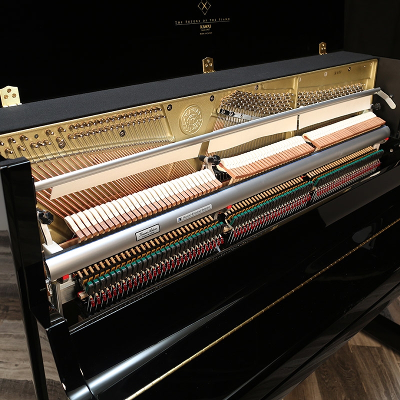 The Kawai K-400 upright piano stands out with its elegant design and performance features tailored for serious musicians and institutions. At 48 inches (122 cm), it offers a unique grand-style music rack, providing pianists with the convenience of a larger surface typically found on grand pianos. Equipped with Kawai’s Millennium III Upright Action, featuring ABS-Carbon components, the K-400 delivers exceptional responsiveness, durability, and precision. Its solid spruce soundboard ensures a rich, resonant tone, while the Soft Fall fallboard system adds safety and elegance. The K-400 is the perfect blend of grand piano features and upright practicality, offering a premium playing experience in a compact form. Watch videos of the K-400 being played by a concert pianist here - Videos