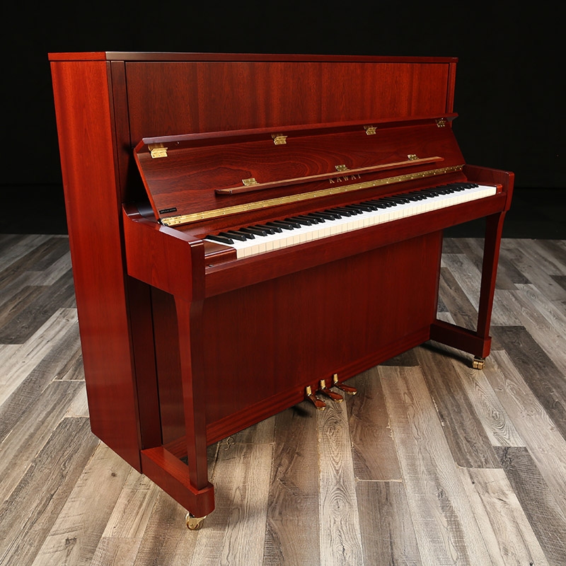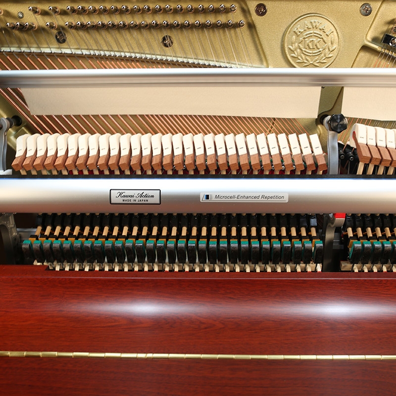 The Kawai K-300 in a satin mahogany offers an exquisite combination of elegant design and superior performance, making it an excellent choice for discerning pianists and institutions. Standing at 48 inches (122 cm) tall, the K-300 features Kawai’s advanced Millennium III Upright Action with ABS-Carbon parts, providing unmatched responsiveness and durability for consistent, precision playing. Its solid spruce soundboard and mahogany core hammers produce a full, rich tone with exceptional clarity, while the luxurious mahogany finish adds a touch of warmth and sophistication to any space. The K-300 blends professional-level sound and touch with timeless beauty. View videos of this piano being played by a concert pianist here - Videos